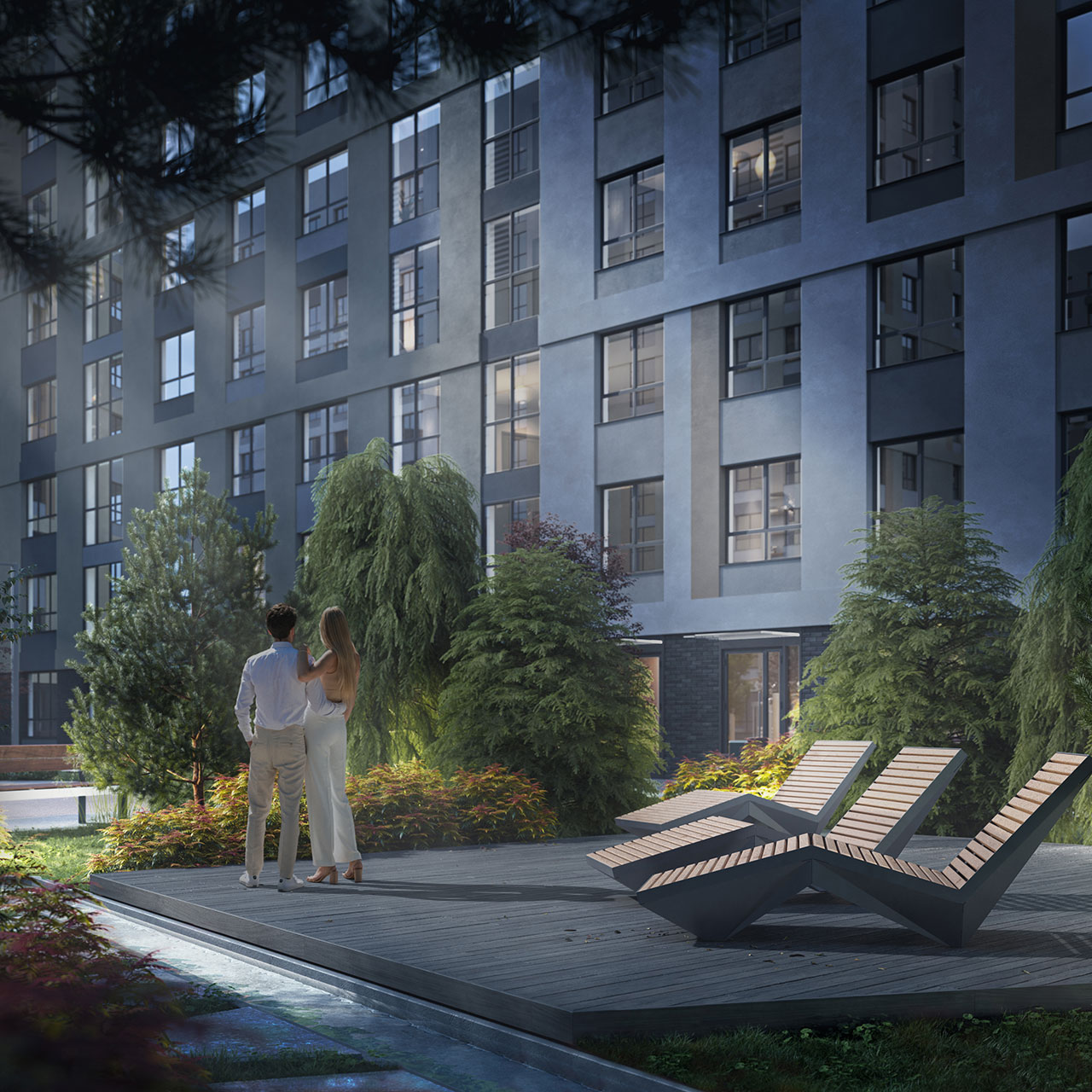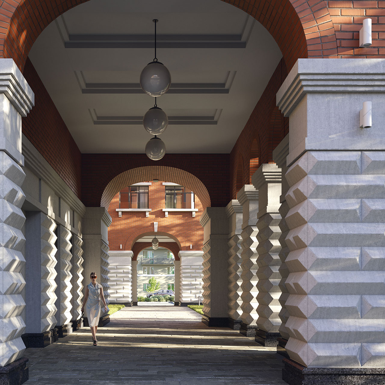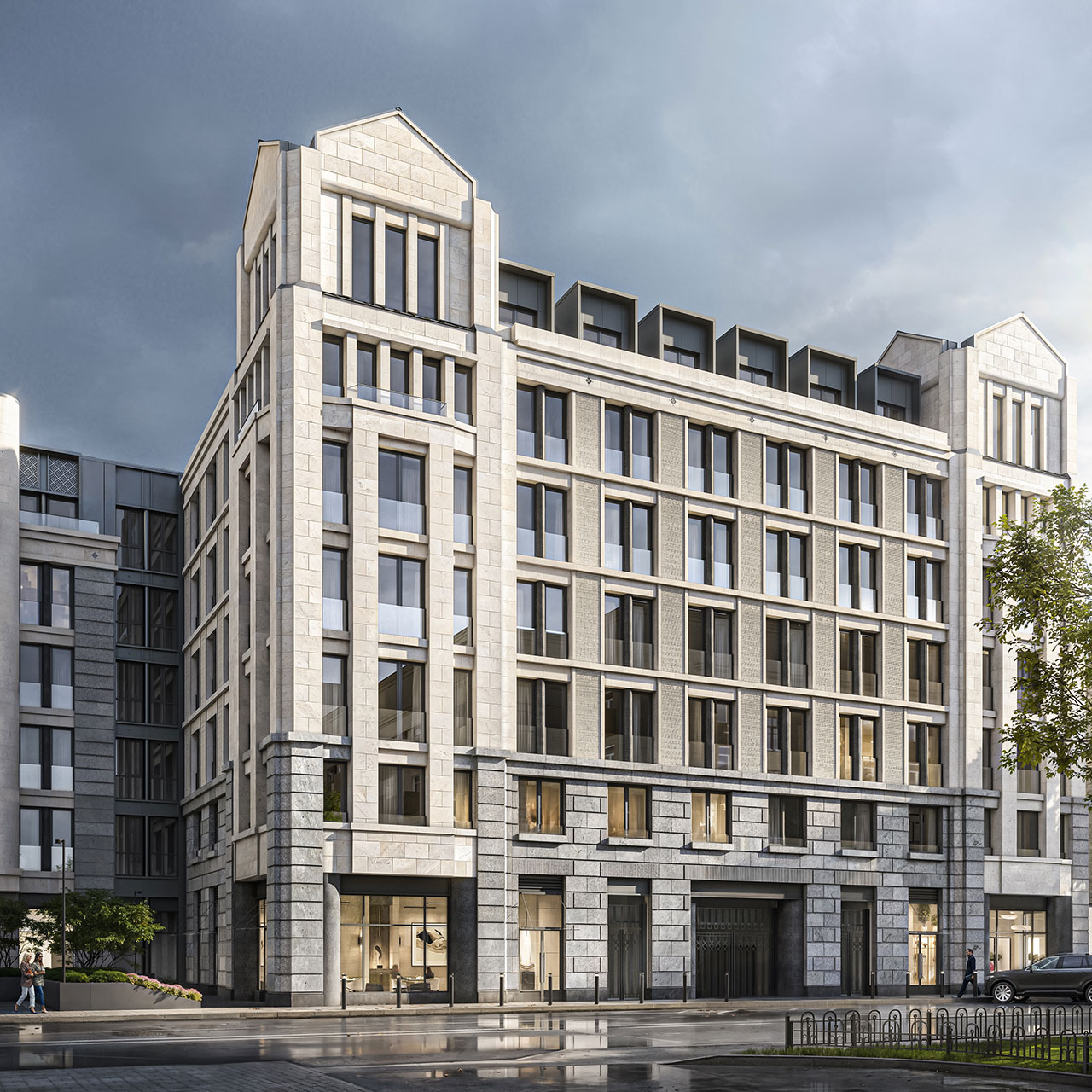 Изящный оштукатуренный фасад, облицовка цокольного этажа естественным камнем, пилястры с первого до четвертого этажа — все это позволяет дому идеально вписаться в окружающую застройку и соответствовать высоким требованиям архитектуры Петербурга.